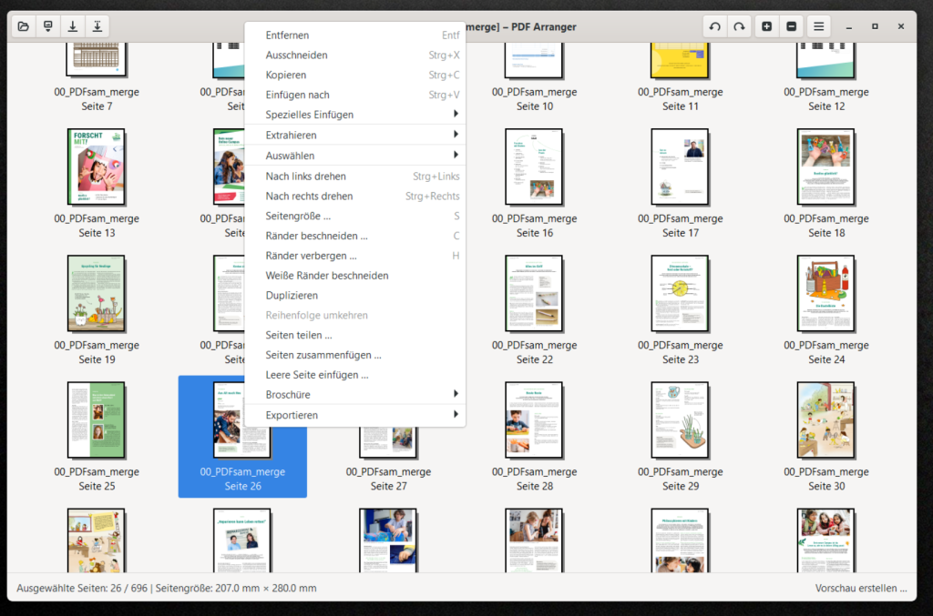 Wer sehr oft ähnliche Änderungen vornimmt, der kann alternativ zu dem kostenlosen Tool PDF Arranger greifen. Die Bearbeitung erfolgt dann zwar extern, aber man erhält eine Vielzahl weiterer Möglichkeiten und ist auch bei sehr großen Dateien flott unterwegs.