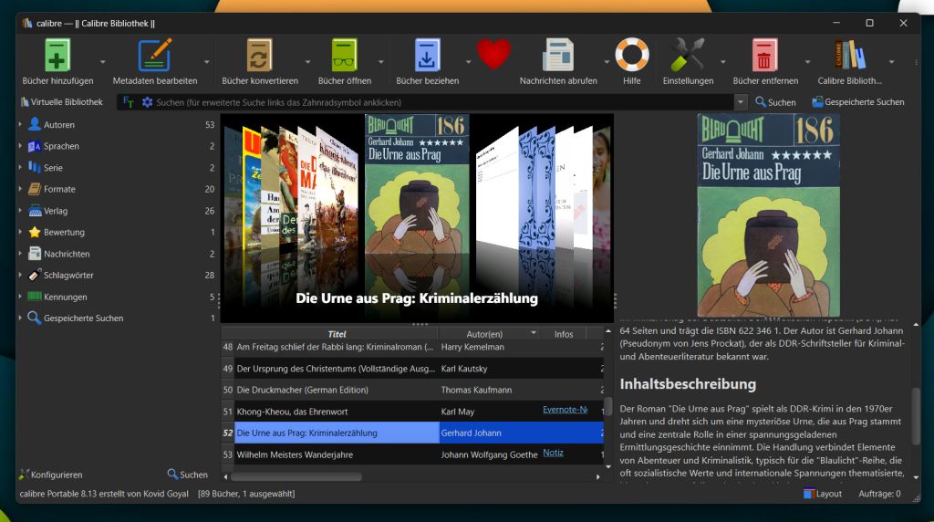 Auf diese Weise spart man sich das Hantieren mit einem USB-Kabel. Auch kann man so Calibre von anderen Geräten aus „füttern“ und hat immer einen einheitlichen Buchbestand.