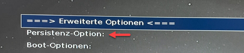 Im Untermenü gibt es den Punkt „Persistenz-Option“:
