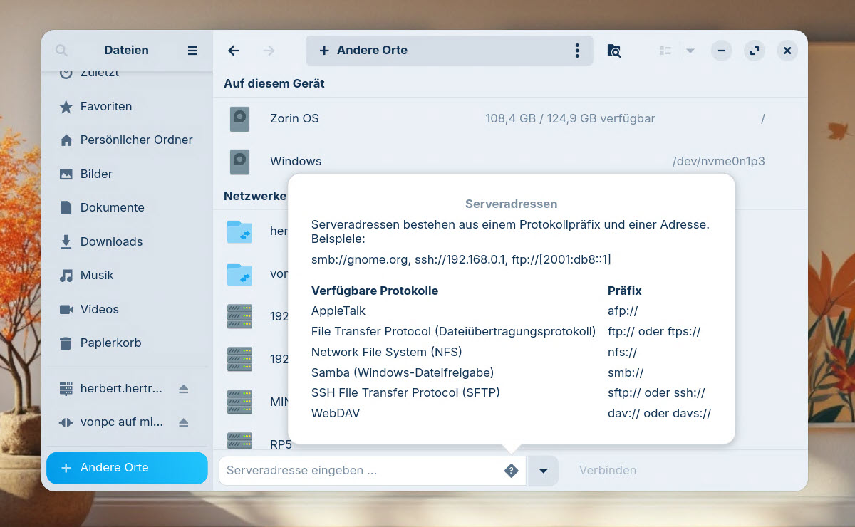 Als Linux-Mint-User bin ich gewohnt, dass Laufwerke recht einfach im Netzwerk zur Verfügung gestellt werden können – und umgekehrt auf freigegebene Laufwerke zugegriffen werden kann. Aber Zorin 18 macht alles gefühlt noch einen Tick einfacher. Viele Schritte, die man sonst zu Beginn vornehmen muss, entfallen. Freigegebene Laufwerke werden problemlos erkannt und eingebunden: