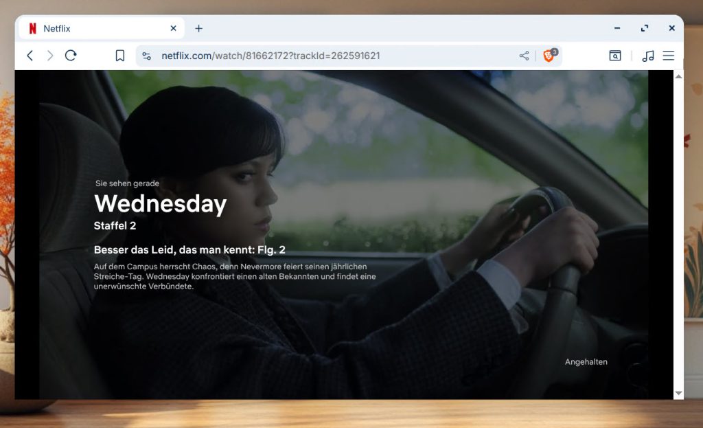 DRM bei Streaming-Angeboten stellt auch kein Problem dar. Der (Brave-)Browser ist bereits so installiert, dass man mit Netflix & Co. direkt loslegen kann (die Szene mit dem Fahrlehrer bei Wednesday, S2E2, gefällt mir besonders gut – hat jetzt aber nicht mit Zorin zu tun).