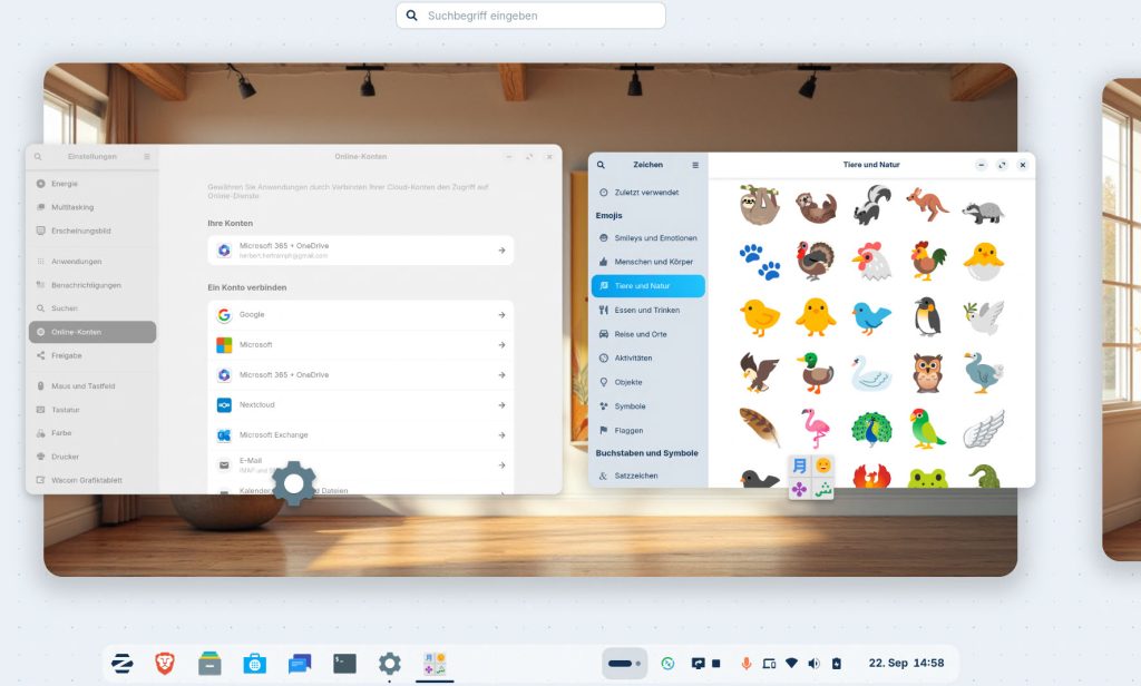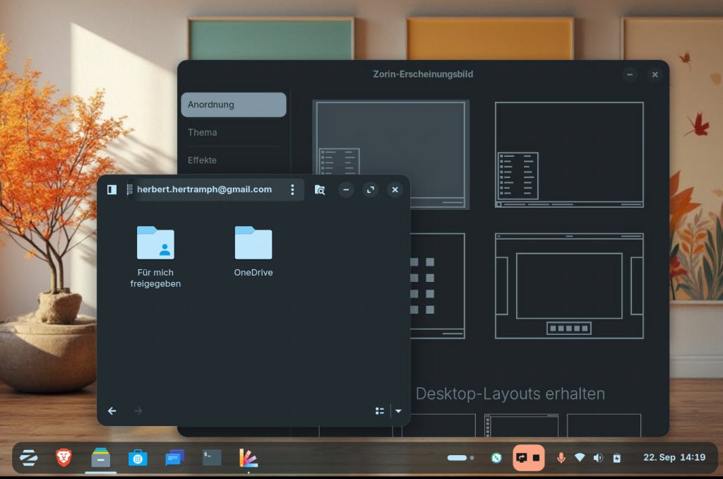 Auf den ersten Blick könnte man denken, dass man es mit Windows 11 zu tun hätte. Dabei geht es nicht um die üblichen Layout-Anpassungen, die Windows lediglich imitieren. Zorin 18 (aktuell noch Beta) hat, wie schon die vorhergehenden Versionen, besonders Anwender:innen im Blick, die noch eine enge Bindung an Windows haben. Snap-Layout-Leiste für die Positionierung von Programmfenstern? Vorhanden. OneDrive-Zugriff im Dateibrowser? Geht klar. Vereinfachte Nutzung der Online-Varianten von Word, PowerPoint und Excel? Yep. Blitzschnelle Volltextsuche über Ordner und Unterordner hinweg? Checked. Einbinden von Netzwerk-Laufwerken ohne Fummelei? Natürlich. Remote-Zugriff von Windows eingebaut? Yep. Ansteuern von Drucker und Scanner? Aber sicher. Austausch mit dem Smartphone? Null Problemo. Und so weiter …