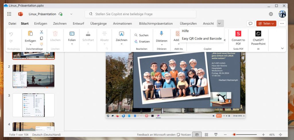 Beim Doppel-Klick auf eine Microsoft-Datei wird das Dokument in LibreOffice geladen und kann von da wieder im Microsoft-Format auf OneDrive gespeichert werden.